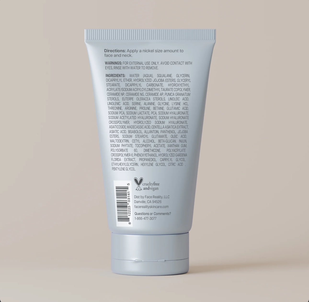 Water (Aqua), Squalane, Glycerin, Dicaprylyl Ether, Hydrolyzed Jojoba Esters, Glyceryl Stearate, Dicaprylyl Carbonate, Hydroxyethyl Acrylate/Sodium Acryloyldimethyl Taurate Copolymer, Ceramide NP, Ceramide NG, Ceramide AP, Punica Granatum Sterols, Euterpe Oleracea Sterols, Linoleic Acid, Linolenic Acid, Serine, Alanine, Glycine, Lysine HCl, Threonine, Arginine, Proline, Betaine, Glutamic Acid, Sodium PCA, Sodium Lactate, PCA, Sodium Hyaluronate, Sodium Acetylated Hyaluronate, Sodium Hyaluronate Crosspolymer, Hydrolyzed Sodium Hyaluronate, Asiaticoside, Madecassic Acid, Centella Asiatica Extract, Asiatic Acid, Bisabolol, Allantoin, Panthenol, Jojoba Esters, Sodium Stearoyl Glutamate, Oleic Acid, Maltodextrin, Cetyl Alcohol, Beta-Glucan, Inulin, Sodium Phytate, Tocopheryl Acetate, Xanthan Gum, Polysorbate 60, Dimethicone, Polyacrylate Crosspolymer-6, Phenoxyethanol, Hydrolyzed Gardenia Florida Extract, Propanediol, Caprylyl Glycol, Ethylhexylglycerin, Hexylene Glycol, Citric Acid , Pentylene Glycol